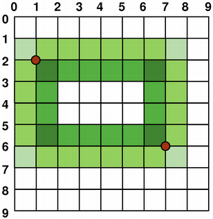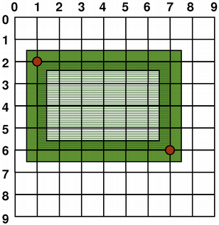 QPainter painter(this); painter.setRenderHint( QPainter::Antialiasing); painter.setPen(Qt::darkGreen); painter.drawRect(1, 2, 6, 4); |