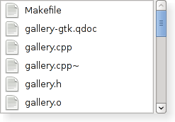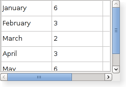 The QScrollBar widget provides a vertical or horizontal scroll bar. Here, we show a scroll bar with horizontal orientation. |