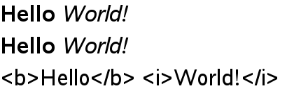 Text { text: "<b>Hello</b> <i>World!</i>" }