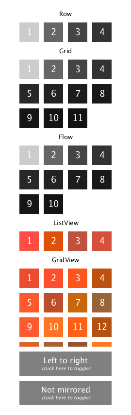 brief This example shows how to control the horizontal layout direction of Row , Grid and Flow positioners, and ListView and GridView model views.
