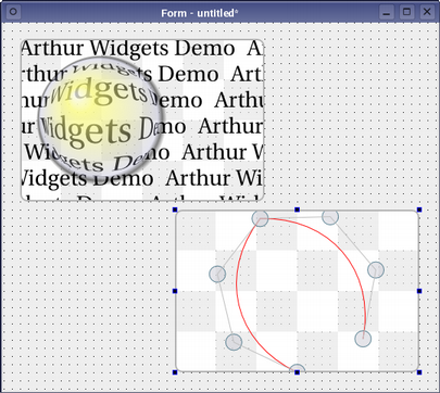 The specialized widgets used in the other demonstrations of the Arthur painting system are provided as custom widgets to be used with Qt Designer . Since each of the widgets provides a set of signals and slots, the effects they show can be controlled by connecting them up to standard input widgets.
