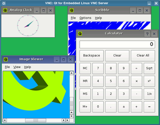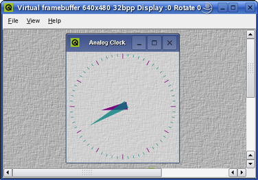 cd path/to/QtEmbedded/examples/widgets/analogclock ./analogclock -qws -display VNC:0